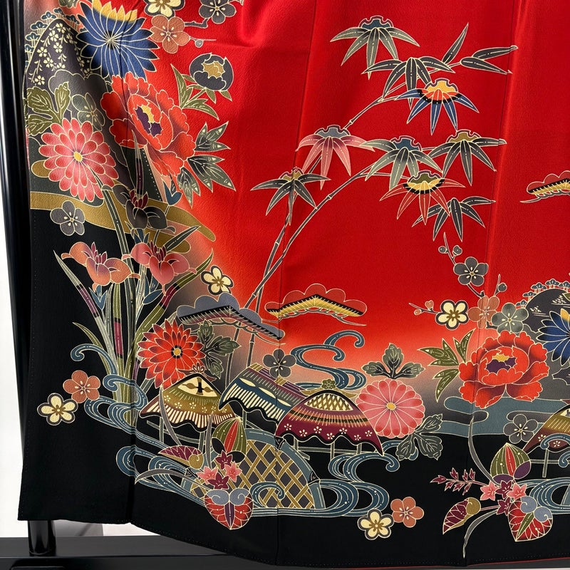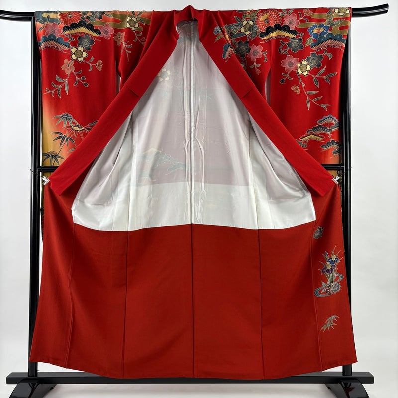 【振袖】 赤系 赤 名品 A 約150cm~約159cm 裄丈66cm (M)size 袖丈91cm以上 9990-29990 美品 二万以下