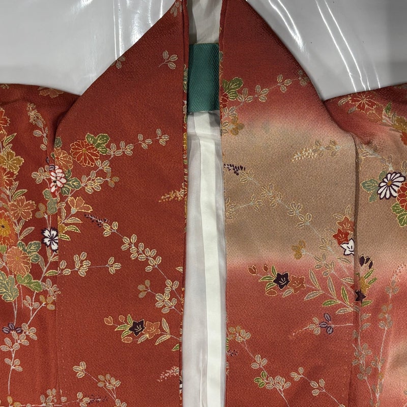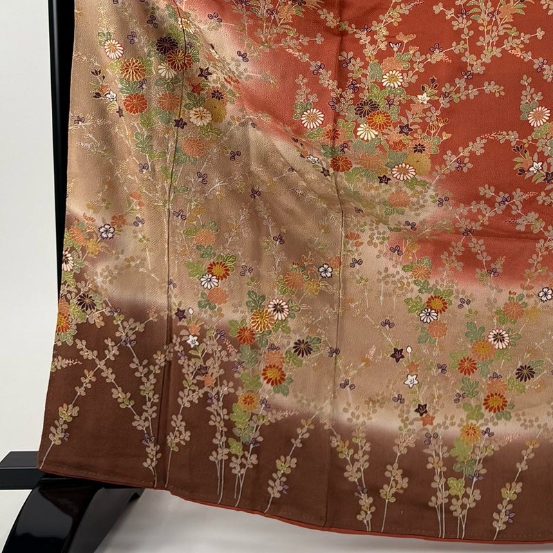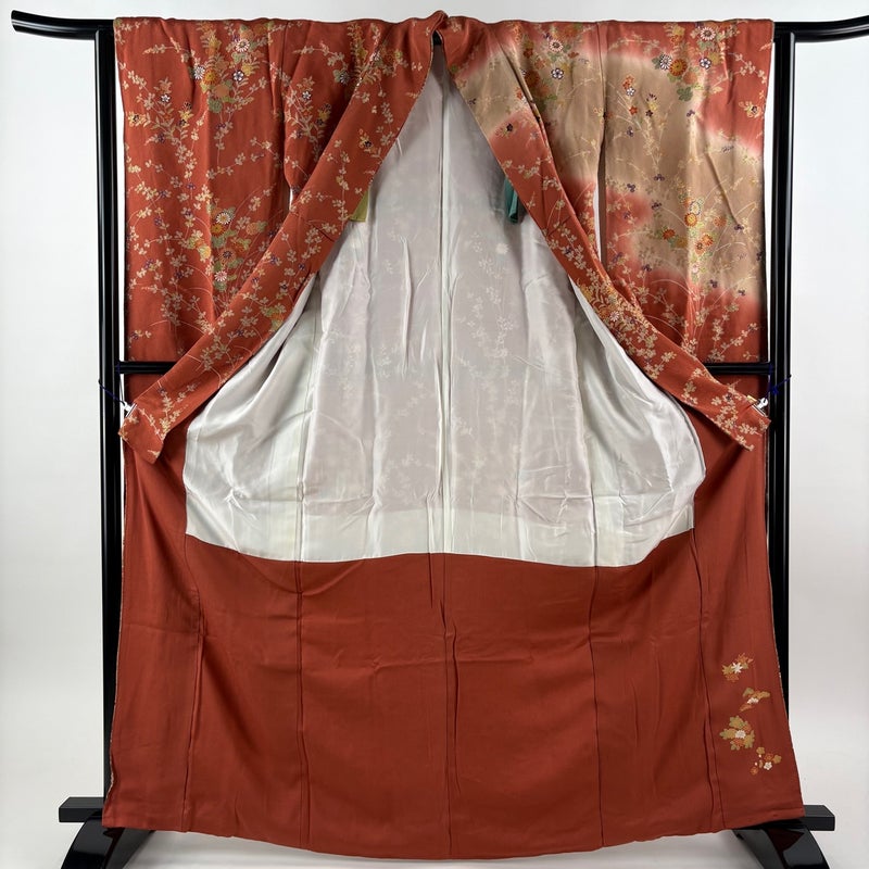 【振袖】 赤系 赤茶 秀品 B 約160cm~約169cm 裄丈63cm-64cm (S)size 袖丈91cm以上 7990-9980 二万以下