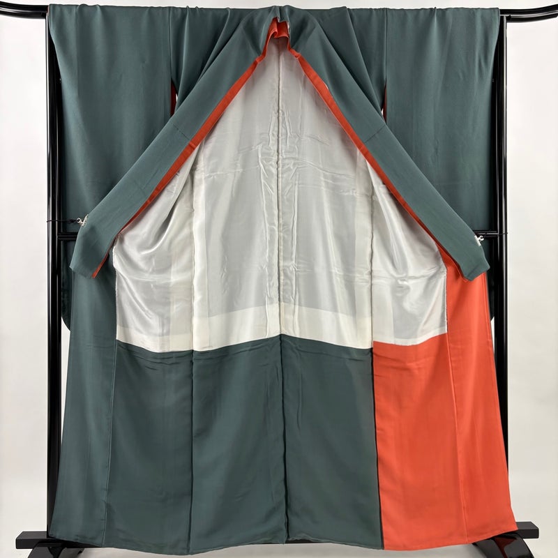 【振袖】 灰色系 灰緑 秀品 B 約160cm~約169cm 裄丈67cm-68cm (M)size 袖丈91cm以上 7990-9980 二万以下