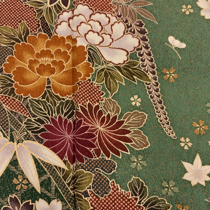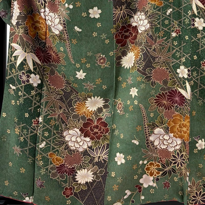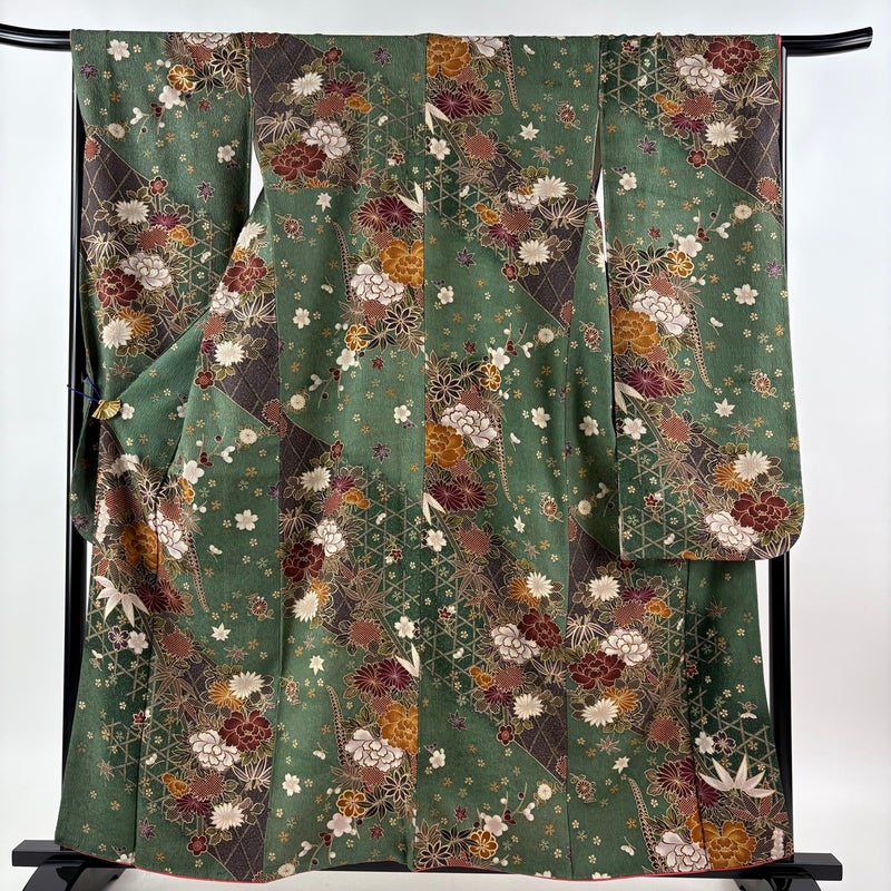 【振袖】 緑系 緑 秀品 B 約150cm~約159cm 裄丈67cm-68cm (M)size 袖丈91cm以上 7990-9980 二万以下