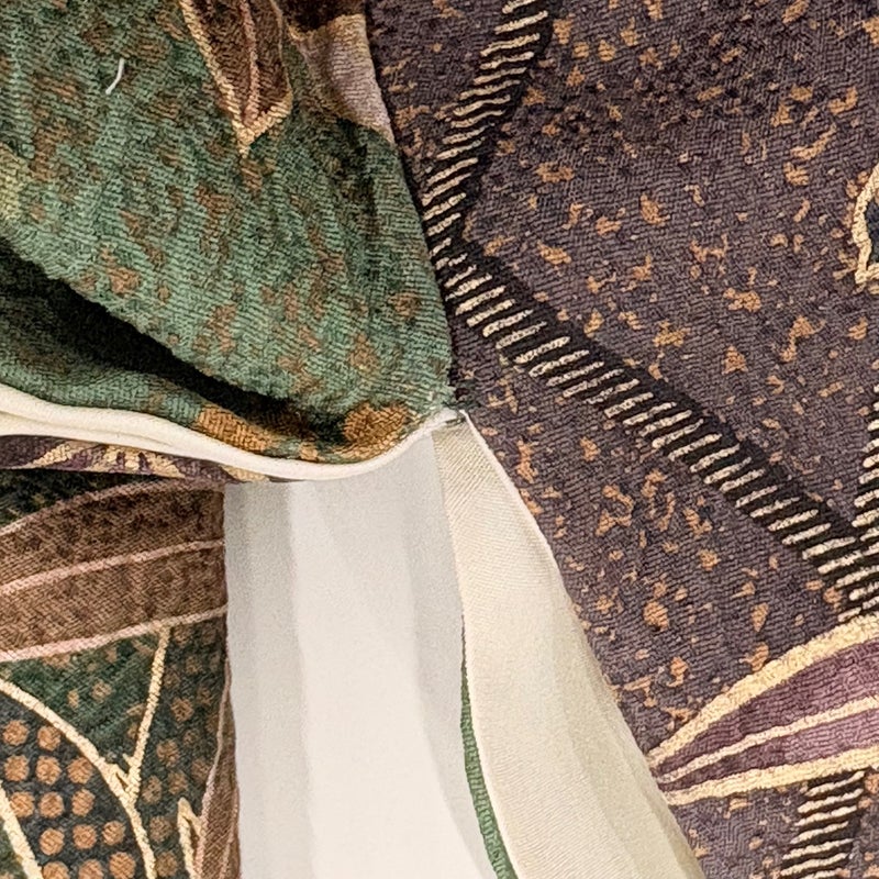 【着物ランク】秀品 【素材】正絹 【身丈】約159cm 【裄丈】約67cm 【袖丈】約98cm 【袖幅】約34.5cm 【前幅】約25cm 【後幅】約30.5cm 【サイズ】M 【着物仕立て】袷 【着用時期】10~5月 【状態ランク】ランクB 【着物着用シーン】成人式、謝恩会