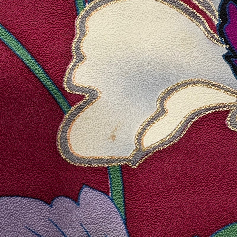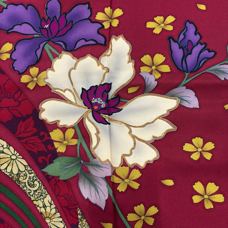 【着物ランク】秀品 【素材】正絹 【身丈】約168cm 【裄丈】約69cm 【袖丈】約113cm 【袖幅】約35cm 【前幅】約24.5cm 【後幅】約30cm 【サイズ】L 【着物仕立て】袷 【着用時期】10~5月 【状態ランク】ランクB 【着物着用シーン】成人式、謝恩会