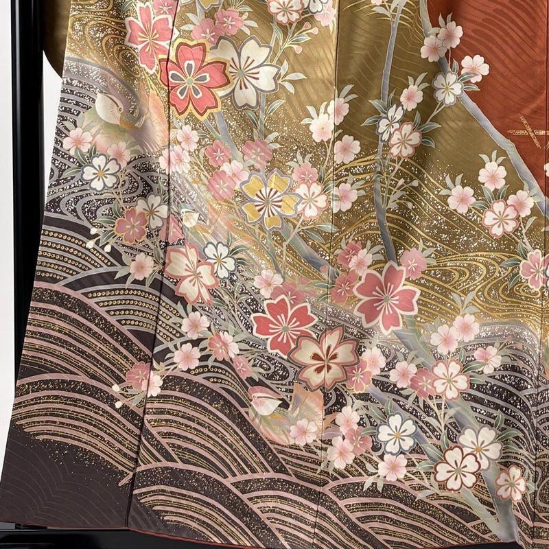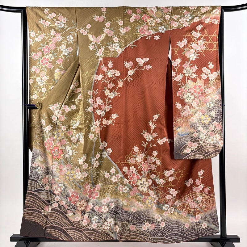 【振袖】 赤系 赤茶 秀品 B 約150cm~約159cm 裄丈63cm-64cm (S)size 袖丈91cm以上 7990-9980 二万以下
