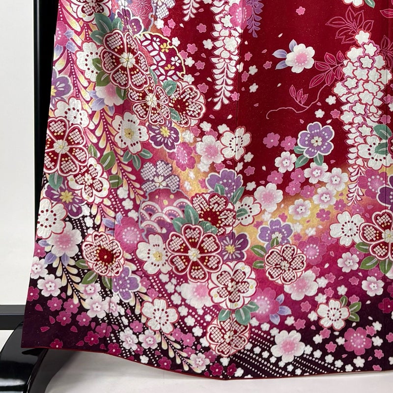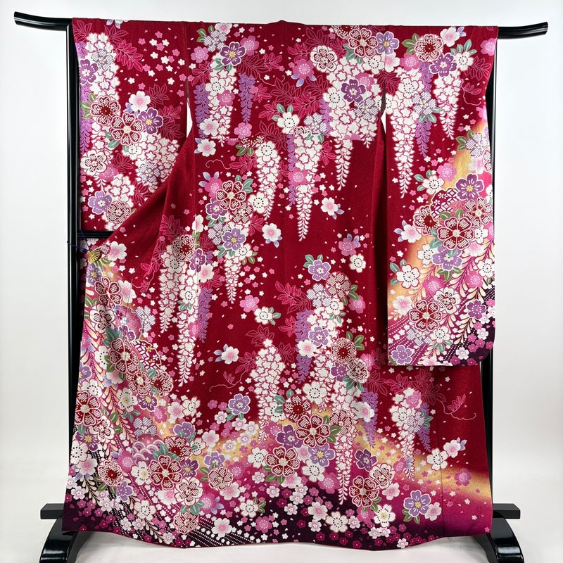 【振袖】 赤系 赤 名品 A 約160cm~約169cm 裄丈67cm-68cm (M)size 袖丈91cm以上 9990-29990 美品 五万以下