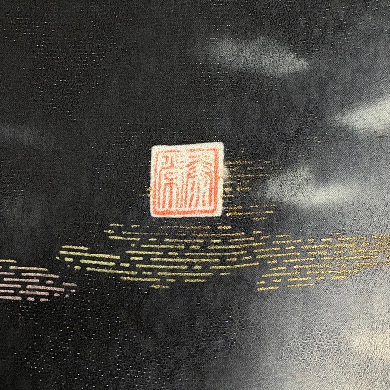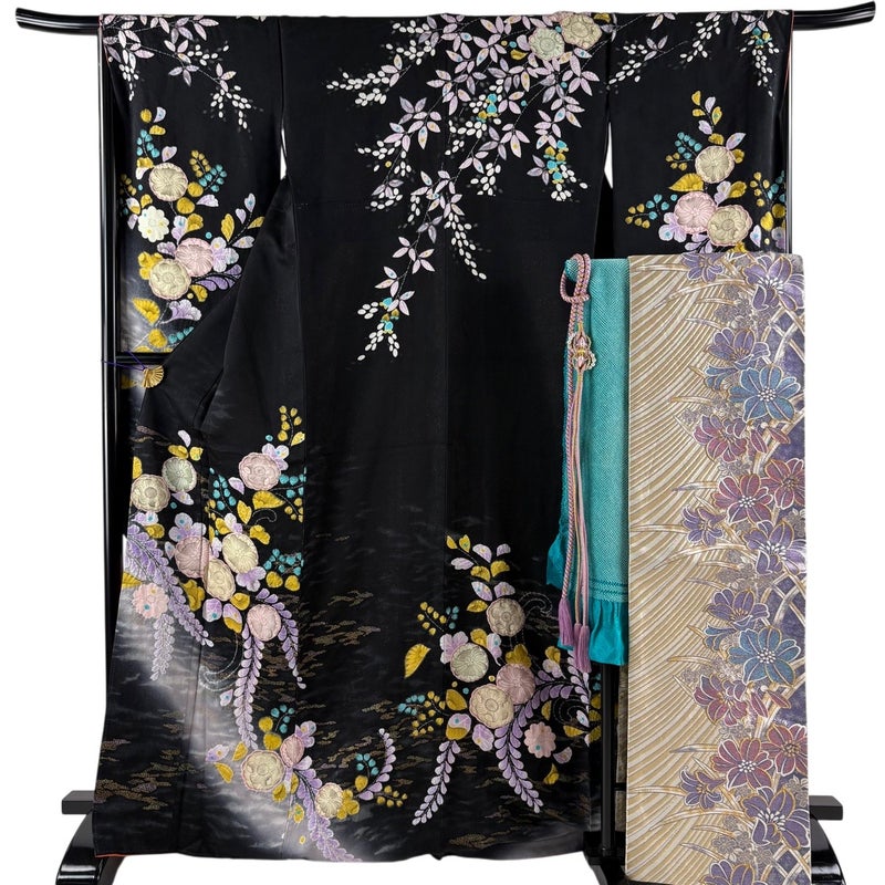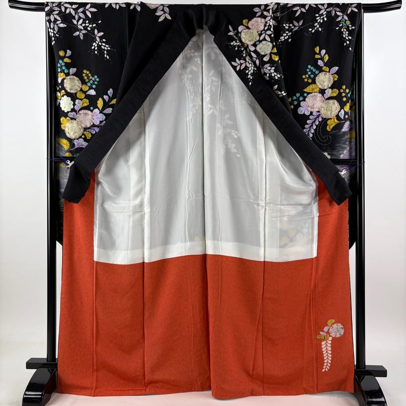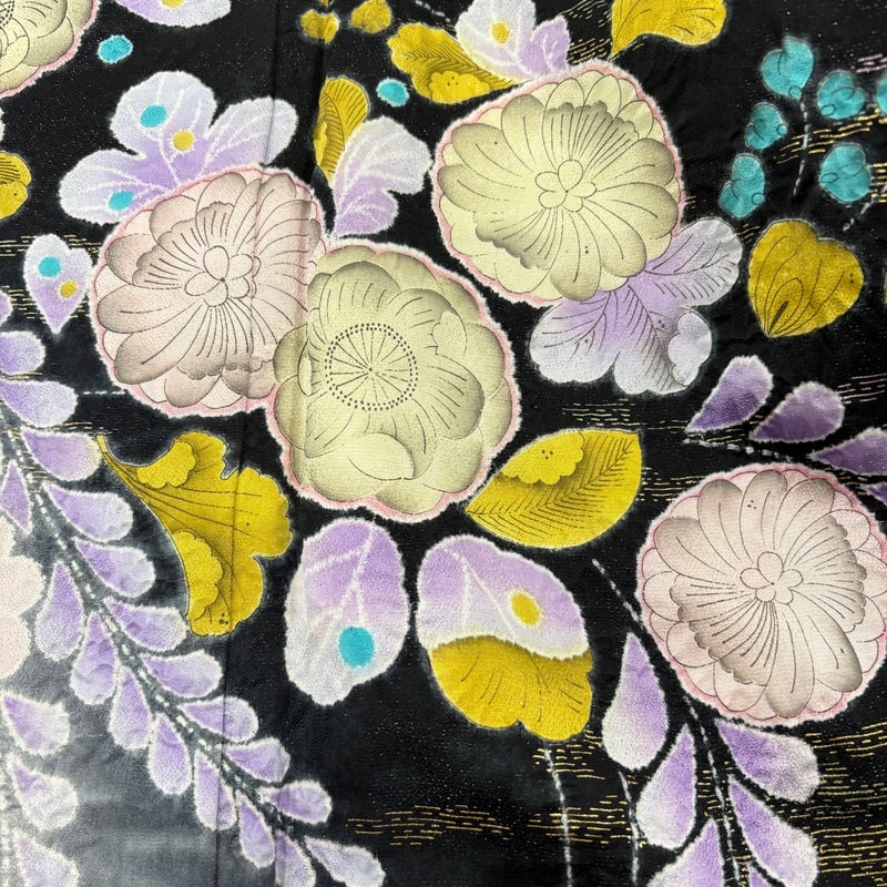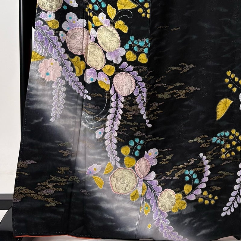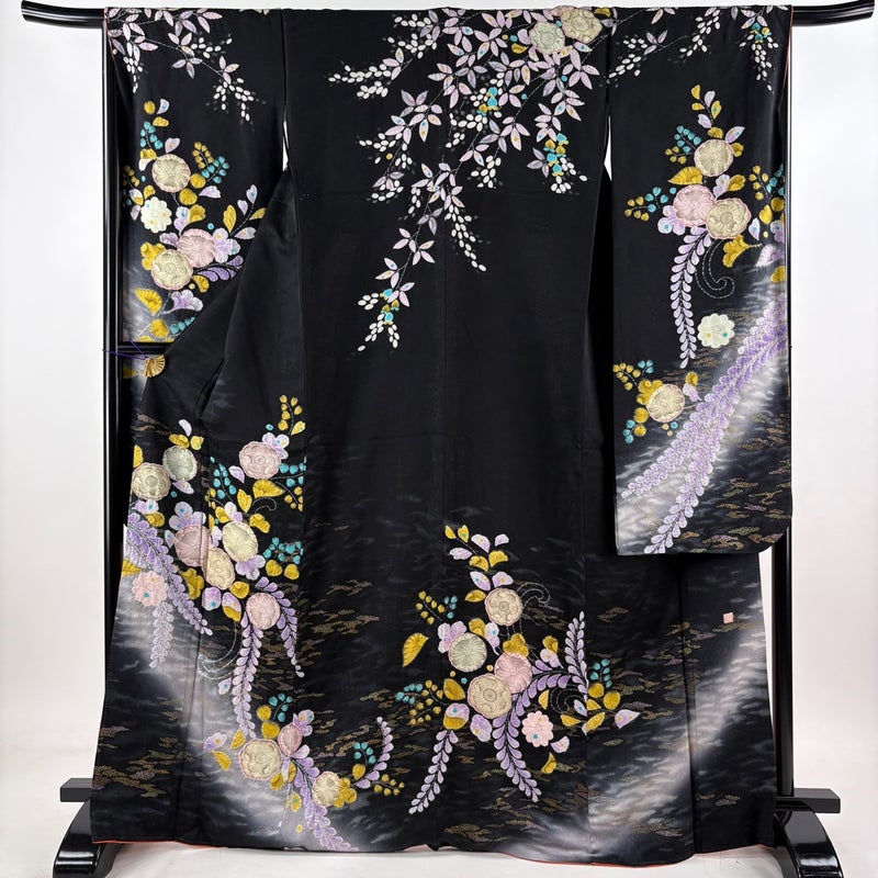 【振袖】 黒系 黒 名品 A 約160cm~約169cm 裄丈65cm (M)size 袖丈91cm以上 9990-29990 美品 五万以下