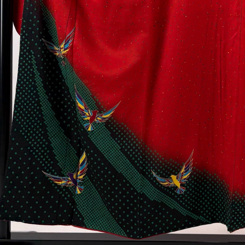 【振袖】 赤系 赤 名品 A 約150cm~約159cm 裄丈65cm (M)size 袖丈91cm以上 9990-29990 美品 二万以下
