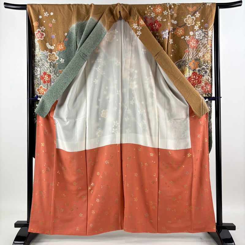 【振袖】 茶系 茶色 名品 B 約160cm~約169cm 裄丈66cm (M)size 袖丈91cm以上 9990-29990 二万以下