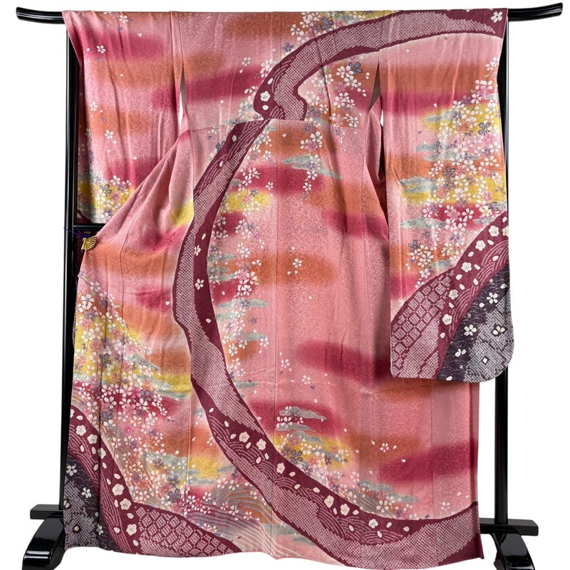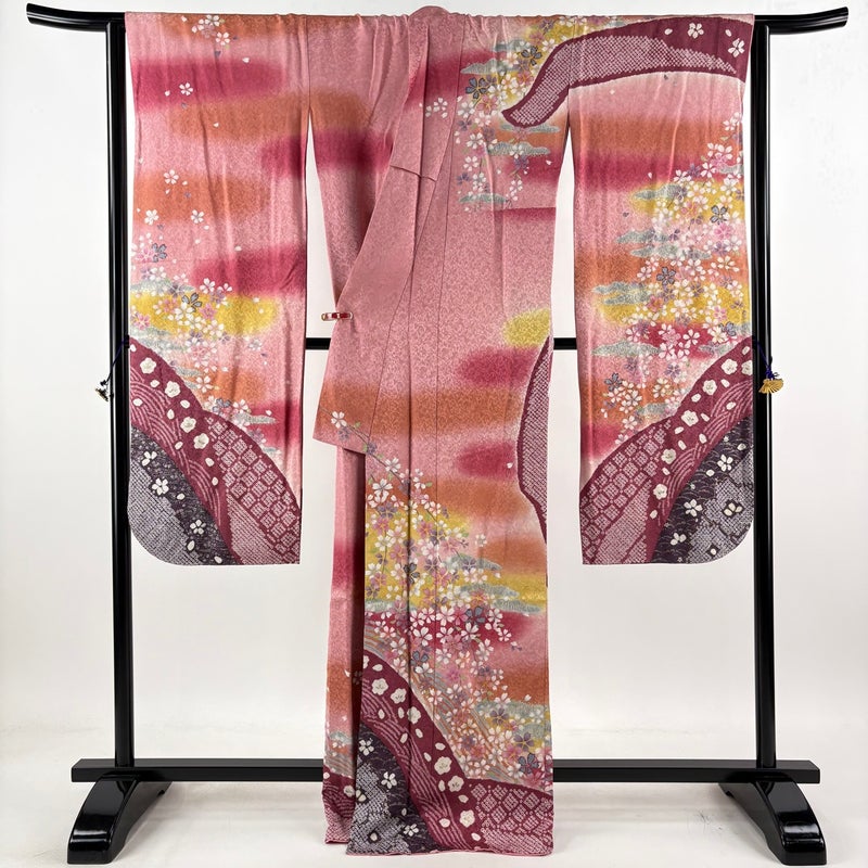 【振袖】 赤系 ピンク 逸品 B 約160cm~約169cm 裄丈69cm以上 (L)size 袖丈91cm以上 30000- 五万以下