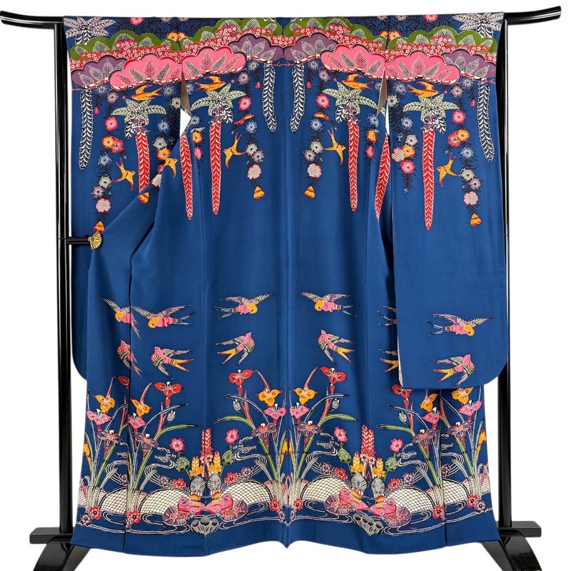 【振袖】 青系 青 秀品 B 約160cm~約169cm 裄丈63cm-64cm (M)size 袖丈91cm以上 7990-9980 二万以下