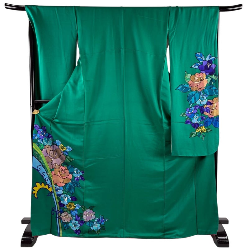 【振袖】 緑系 緑 秀品 B 約170cm~約179cm 裄丈67cm-68cm (L)size 袖丈91cm以上 7990-9980 二万以下