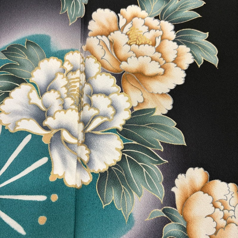 【振袖】 黒系 黒 秀品 A 約160cm~約169cm 裄丈67cm-68cm (L)size 袖丈91cm以上 9990-29990 美品 二万以下