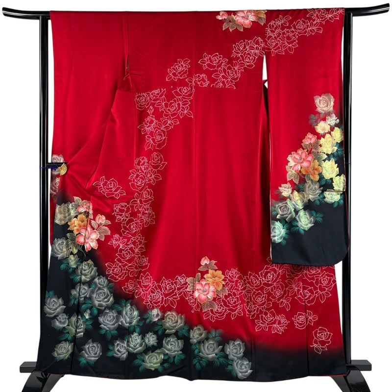 【振袖】 赤系 赤 秀品 C 約160cm~約169cm 裄丈63cm-64cm (S)size 袖丈91cm以上 7990-9980 二万以下