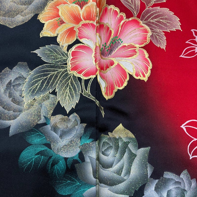 【着物ランク】秀品 【素材】正絹 【身丈】約163cm 【裄丈】約63cm 【袖丈】約110cm 【袖幅】約33cm 【前幅】約23.5cm 【後幅】約29cm 【サイズ】S 【着物仕立て】袷 【着用時期】10~5月 【状態ランク】ランクC 【着物着用シーン】成人式、謝恩会