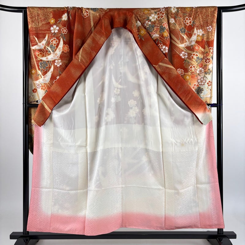 【振袖】 赤系 赤茶 秀品 B 約150cm~約159cm 裄丈65cm (M)size 袖丈91cm以上 7990-9980 二万以下