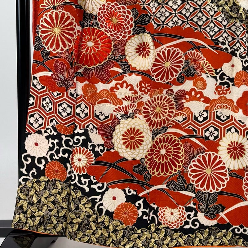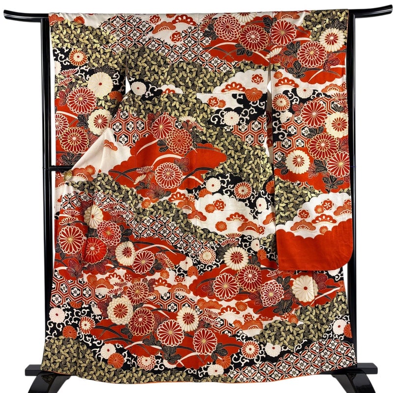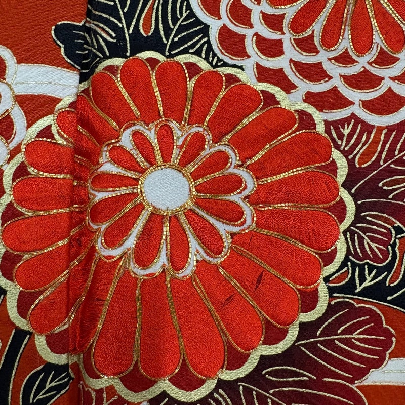 【振袖】 赤系 朱色 秀品 B 約160cm~約169cm 裄丈63cm-64cm (S)size 袖丈91cm以上 7990-9980 二万以下