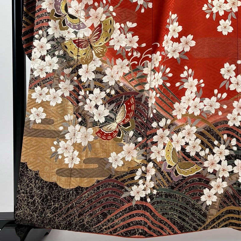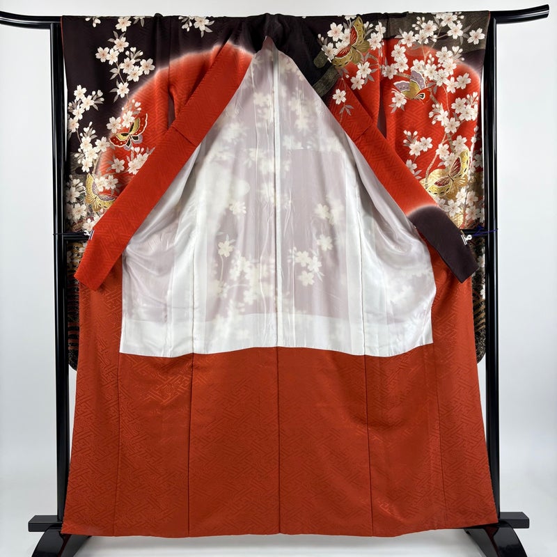 【振袖】 赤系 赤茶 秀品 B 約160cm~約169cm 裄丈63cm-64cm (S)size 袖丈91cm以上 7990-9980 二万以下