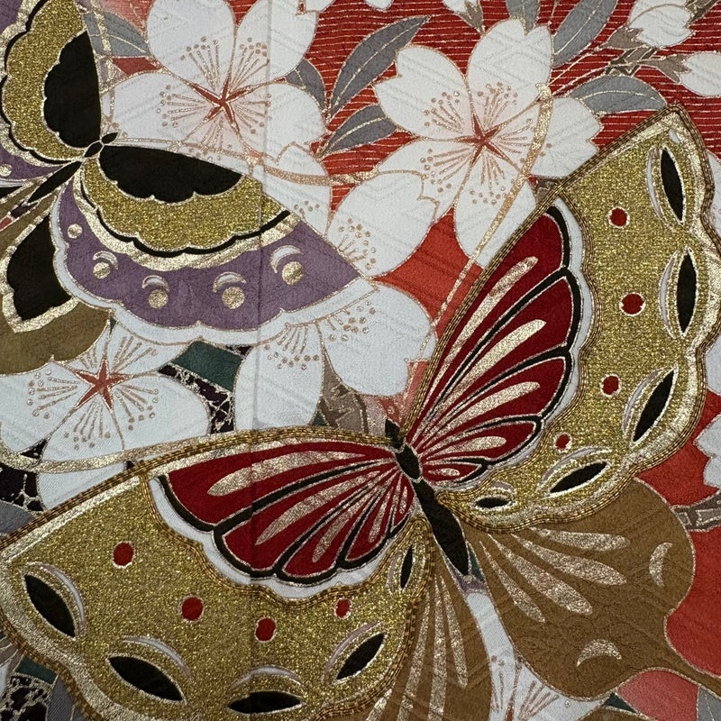 【着物ランク】秀品 【素材】正絹 【身丈】約161.5cm 【裄丈】約63.5cm 【袖丈】約111cm 【袖幅】約34cm 【前幅】約23cm 【後幅】約29cm 【サイズ】S 【着物仕立て】袷 【着用時期】10~5月 【状態ランク】ランクB 【着物着用シーン】成人式、謝恩会