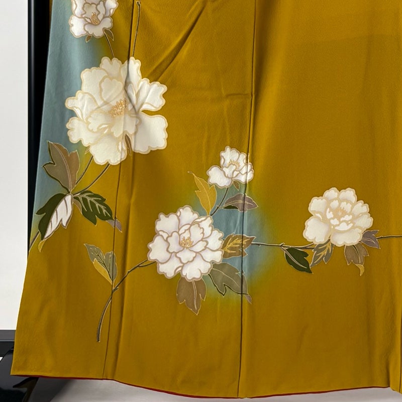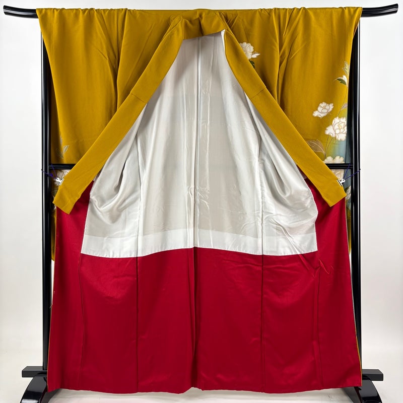 【振袖】 黄色系 黄土色 秀品 A 約160cm~約169cm 裄丈69cm以上 (L)size 袖丈91cm以上 9990-29990 美品 二万以下