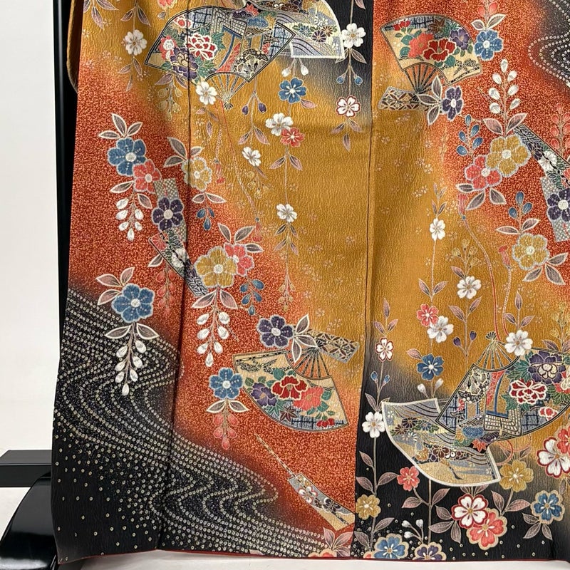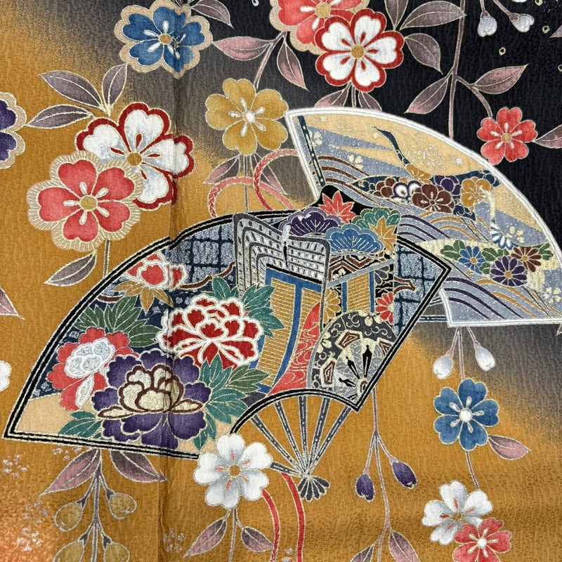 【着物ランク】秀品 【素材】正絹 【身丈】約169.5cm 【裄丈】約67cm 【袖丈】約111.5cm 【袖幅】約35cm 【前幅】約25cm 【後幅】約30.5cm 【サイズ】M 【着物仕立て】袷 【着用時期】10~5月 【状態ランク】ランクA 【着物着用シーン】成人式、謝恩会