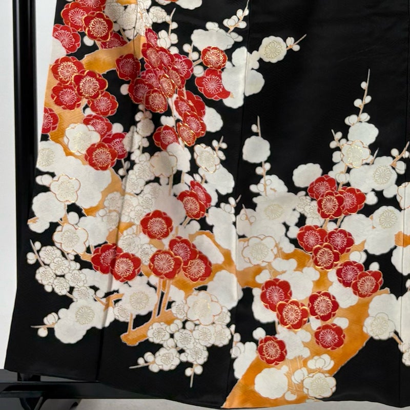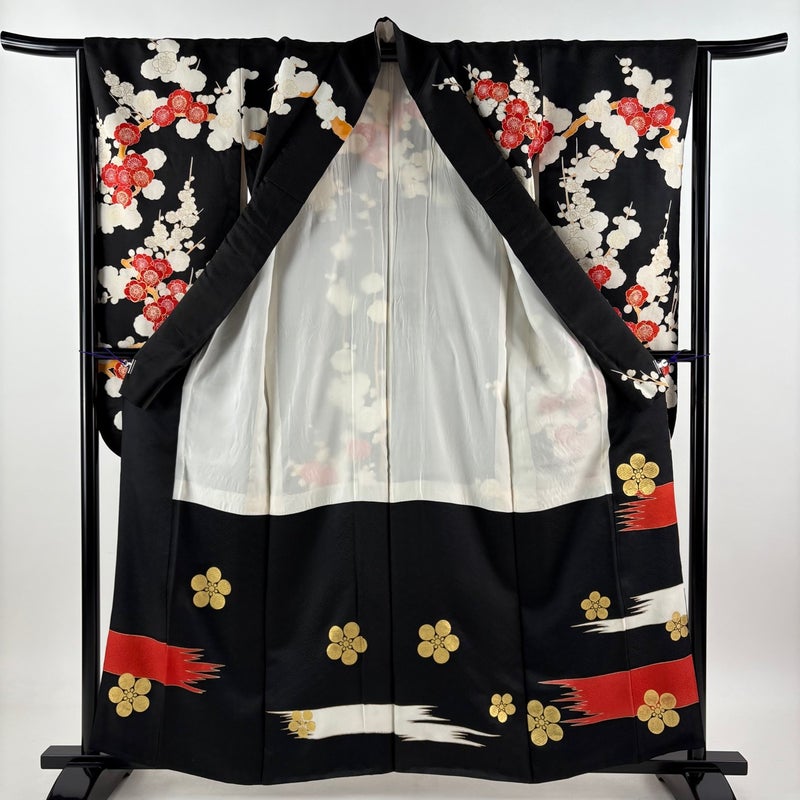 【振袖】 黒系 黒 秀品 C 約150cm~約159cm 裄丈63cm-64cm (S)size 袖丈91cm以上 7990-9980 二万以下