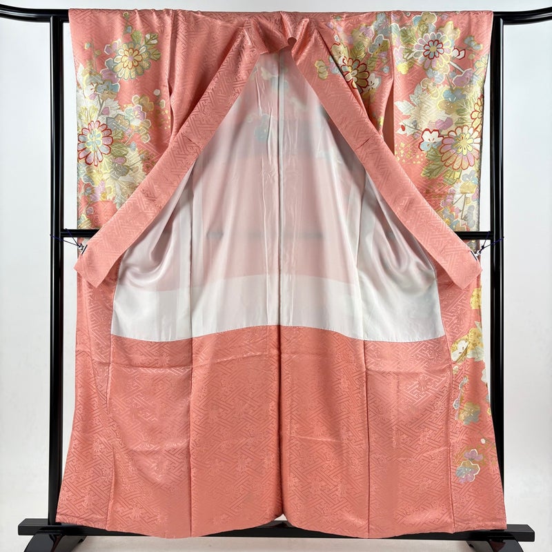 【振袖】 赤系 ピンク 秀品 A 約150cm~約159cm 裄丈63cm-64cm (S)size 袖丈91cm以上 9990-29990 美品 二万以下