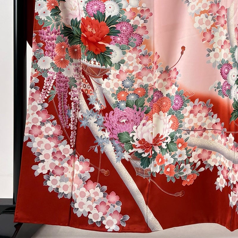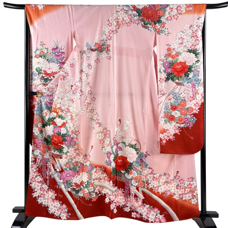 【振袖】 赤系 ピンク 秀品 A 約160cm~約169cm 裄丈67cm-68cm (L)size 袖丈91cm以上 9990-29990 美品 二万以下
