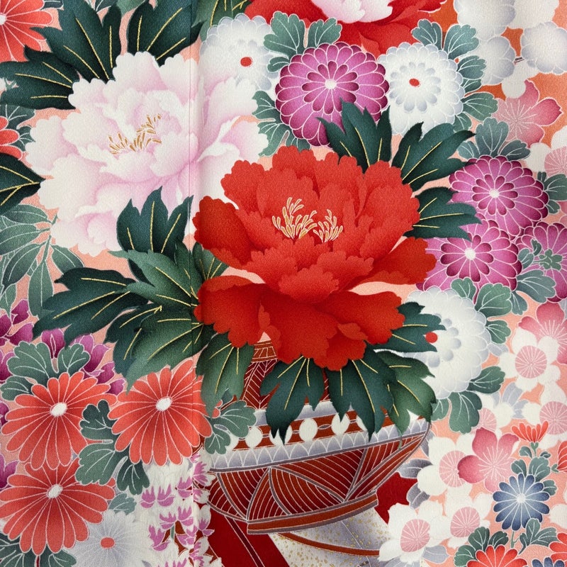 【着物ランク】秀品 【素材】正絹 【身丈】約161.5cm 【裄丈】約67.5cm 【袖丈】約110cm 【袖幅】約34cm 【前幅】約23cm 【後幅】約28.5cm 【サイズ】L 【着物仕立て】袷 【着用時期】10~5月 【状態ランク】ランクA 【着物着用シーン】成人式、謝恩会