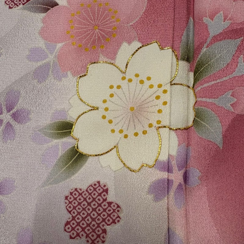 【着物ランク】秀品 【素材】正絹 【身丈】約162cm 【裄丈】約66cm 【袖丈】約103cm 【袖幅】約34.5cm 【前幅】約24.5cm 【後幅】約31cm 【サイズ】M 【着物仕立て】袷 【着用時期】10~5月 【状態ランク】ランクA 【着物着用シーン】成人式、謝恩会
