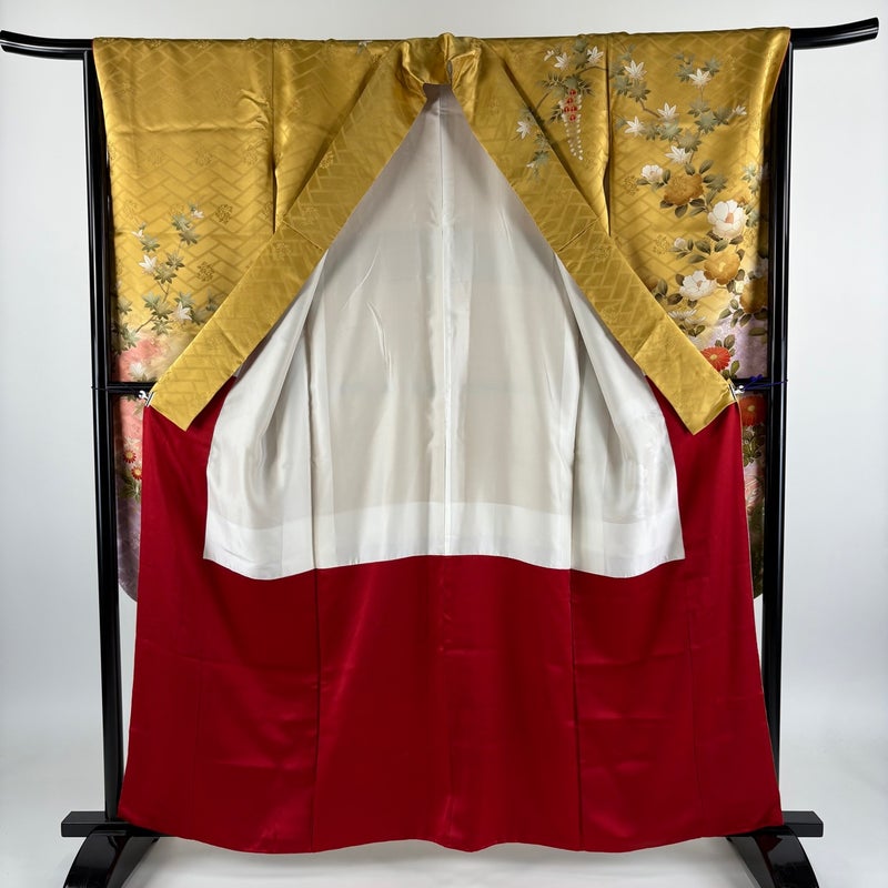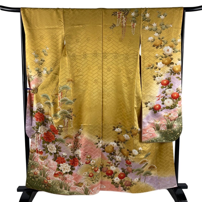 【振袖】 黄色系 山吹色 秀品 B 約150cm~約159cm 裄丈67cm-68cm (M)size 袖丈91cm以上 7990-9980 二万以下