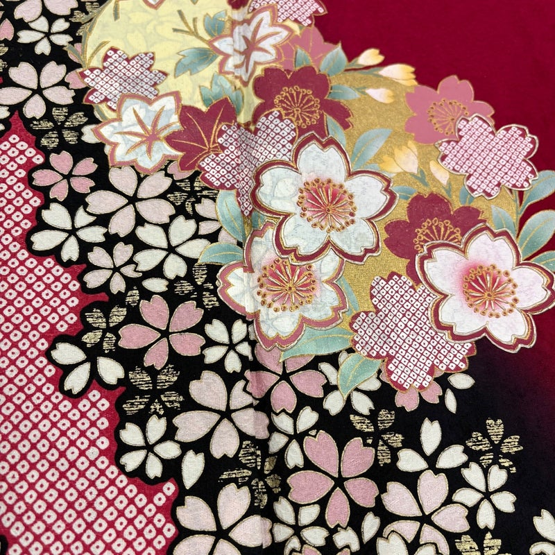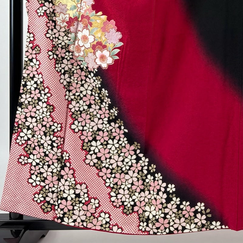 【振袖】 赤系 赤 秀品 B 約150cm~約159cm 裄丈65cm (M)size 袖丈91cm以上 7990-9980 二万以下
