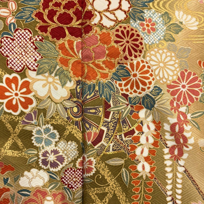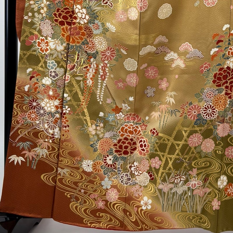 【着物ランク】秀品 【素材】正絹 【身丈】約164cm 【裄丈】約65cm 【袖丈】約110cm 【袖幅】約34.5cm 【前幅】約23cm 【後幅】約29.5cm 【サイズ】M 【着物仕立て】袷 【着用時期】10~5月 【状態ランク】ランクB 【着物着用シーン】成人式、謝恩会