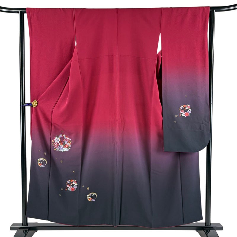 【振袖】 紫系 赤紫 秀品 B 約150cm~約159cm 裄丈62cm以下 (S)size 袖丈91cm以上 7990-9980 二万以下