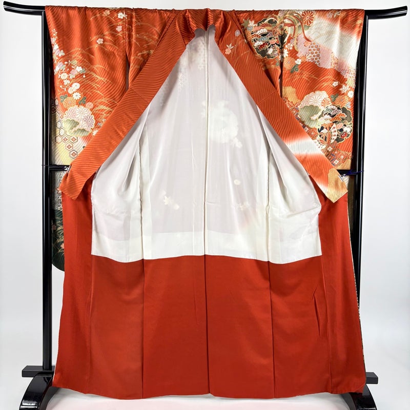 【振袖】 赤系 朱色 秀品 A 約160cm~約169cm 裄丈66cm (M)size 袖丈91cm以上 9990-29990 美品 二万以下