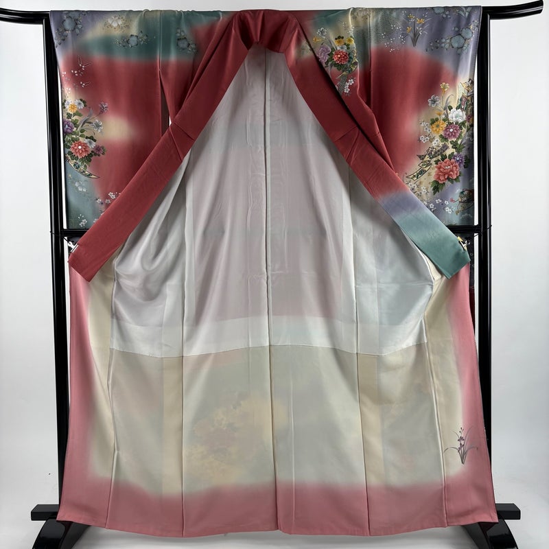 【着物ランク】秀品 【素材】正絹 【身丈】約165cm 【裄丈】約65.5cm 【袖丈】約114cm 【袖幅】約33.5cm 【前幅】約24cm 【後幅】約30.5cm 【サイズ】M 【着物仕立て】袷 【着用時期】10~5月 【状態ランク】ランクB 【着物着用シーン】成人式、謝恩会