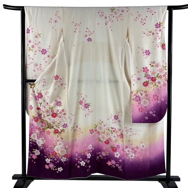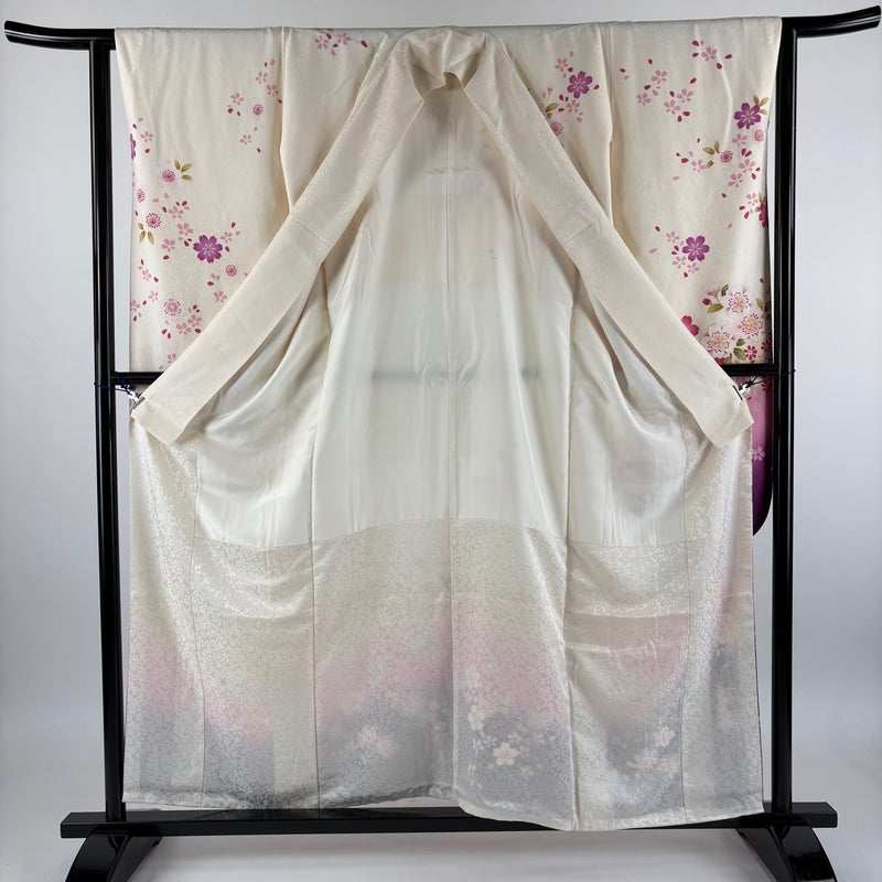【振袖】 白系 クリーム 秀品 B 約150cm~約159cm 裄丈63cm-64cm (M)size 袖丈91cm以上 7990-9980 二万以下