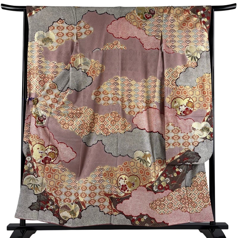 【振袖】 灰色系 灰紫 秀品 B 約150cm~約159cm 裄丈65cm (M)size 袖丈91cm以上 7990-9980 二万以下