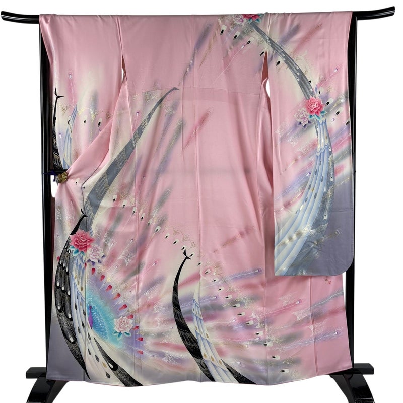 【振袖】 赤系 ピンク 秀品 C 約160cm~約169cm 裄丈66cm (M)size 袖丈91cm以上 7990-9980 二万以下