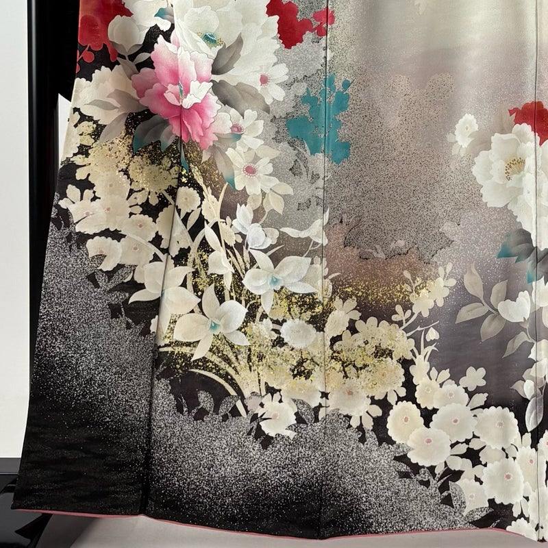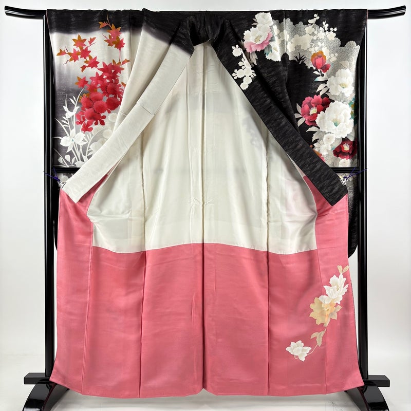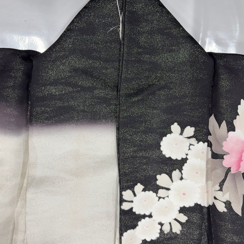【振袖】 黒系 黒 名品 B 約160cm~約169cm 裄丈66cm (M)size 袖丈91cm以上 9990-29990 二万以下