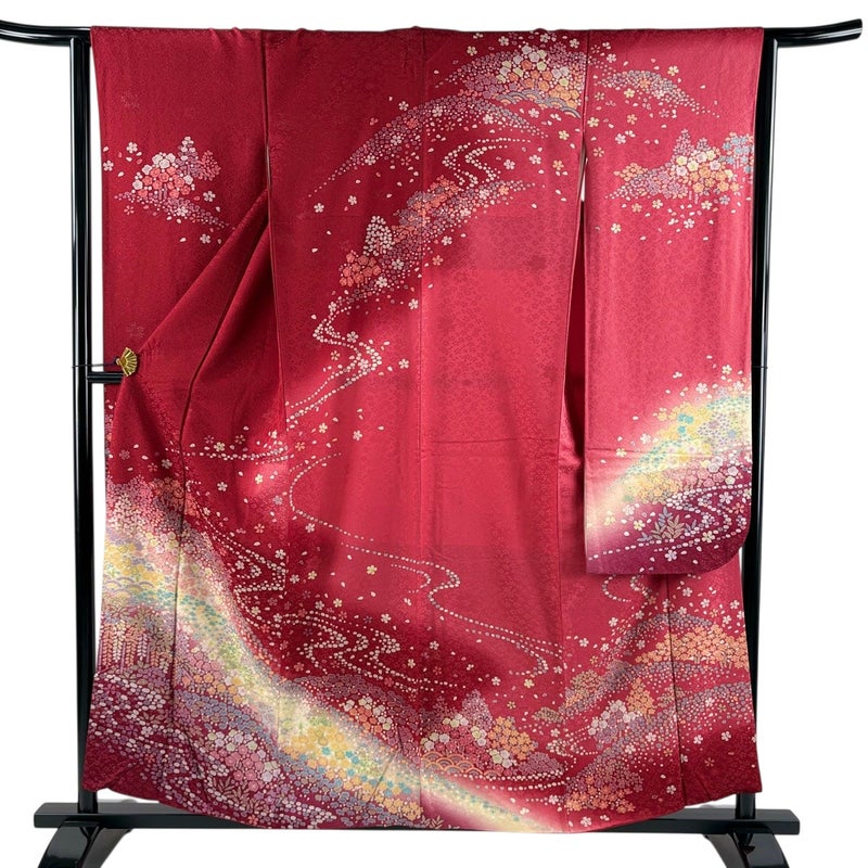 【振袖】 赤系 赤 名品 B 約150cm~約159cm 裄丈63cm-64cm (S)size 袖丈91cm以上 9990-29990 二万以下