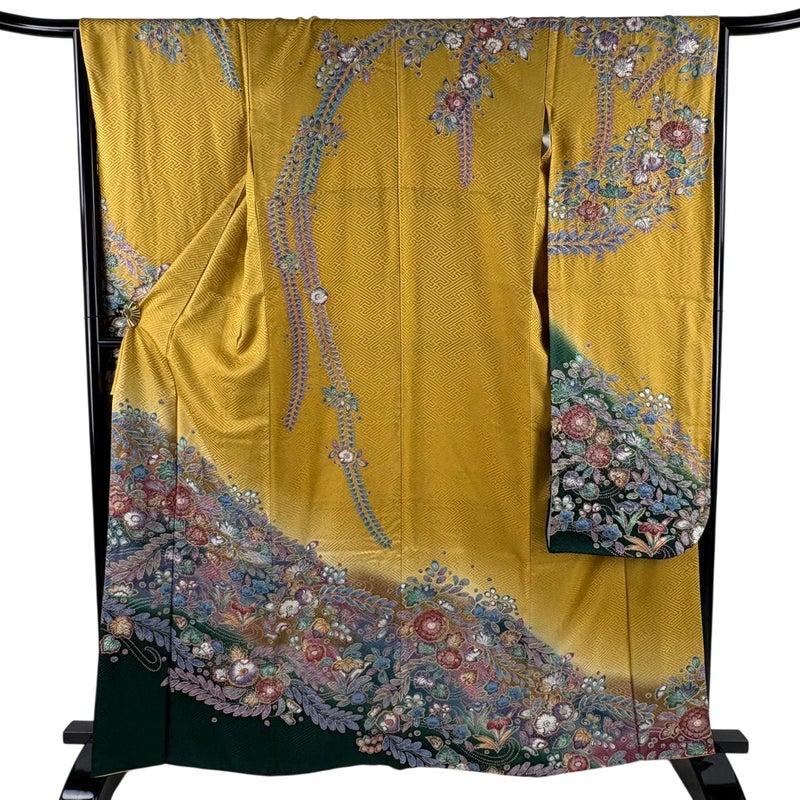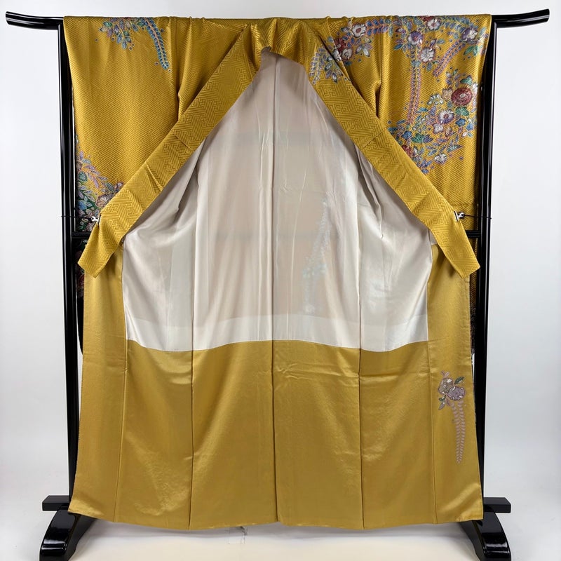 【振袖】 黄色系 からし色 名品 C 約160cm~約169cm 裄丈66cm (M)size 袖丈91cm以上 9990-29990 二万以下