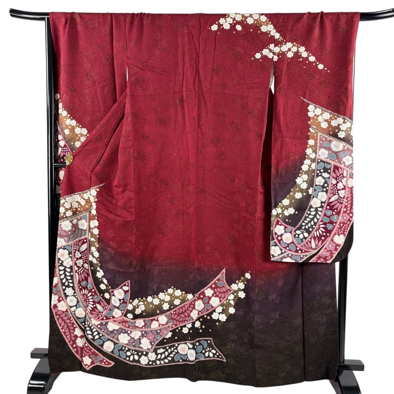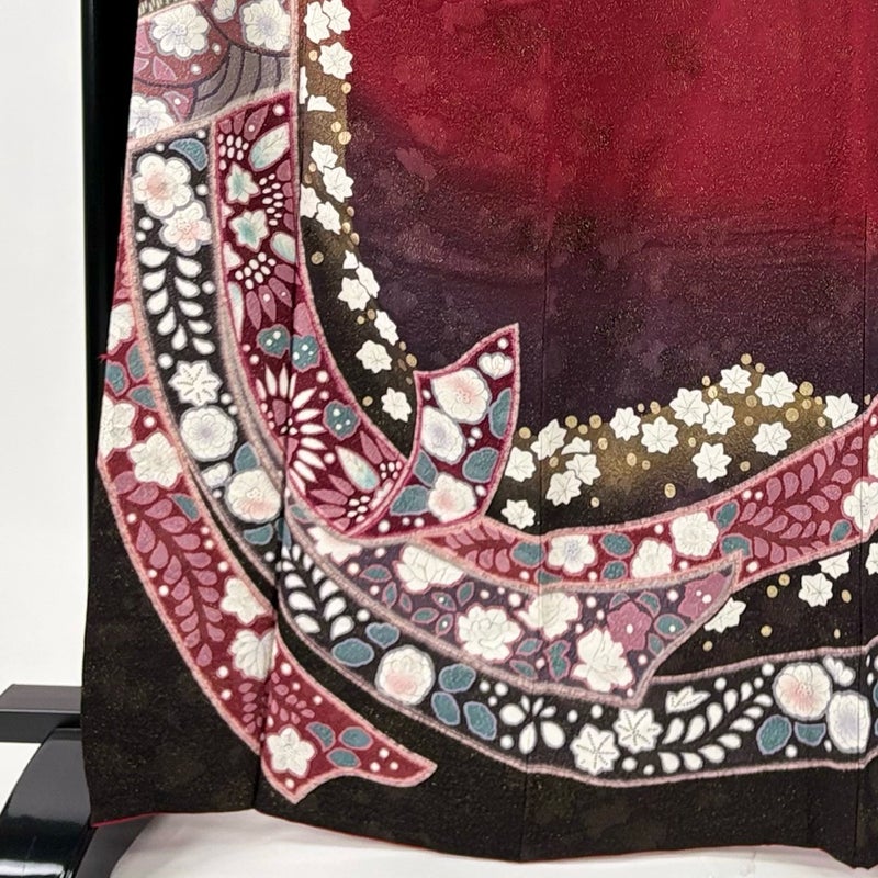【振袖】 赤系 えんじ色 名品 B 約160cm~約169cm 裄丈69cm以上 (L)size 袖丈91cm以上 9990-29990 二万以下