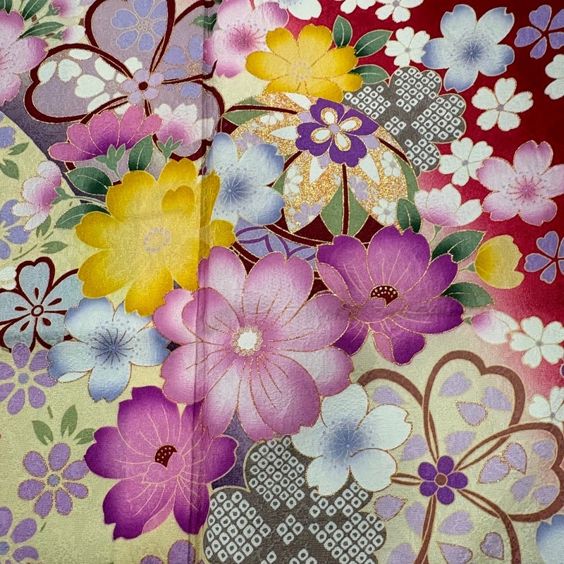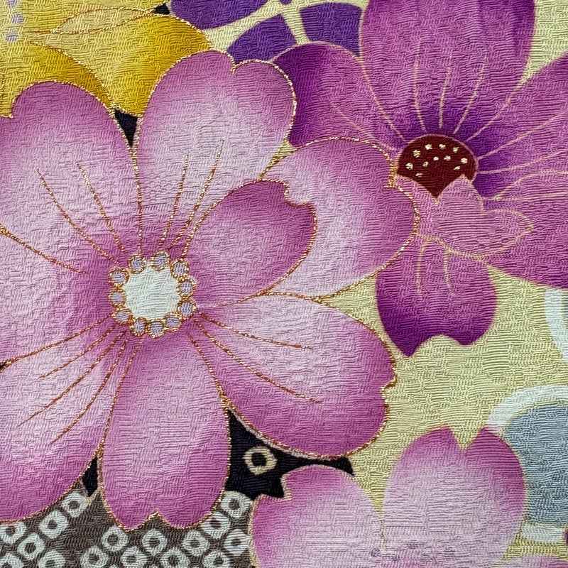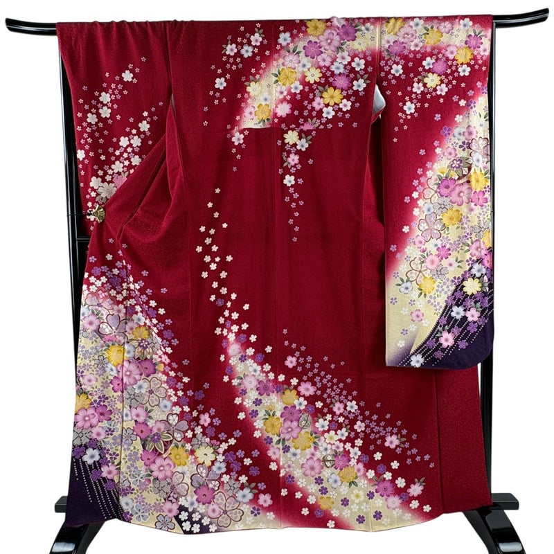 【着物ランク】名品 【素材】正絹 【身丈】約165.5cm 【裄丈】約68cm 【袖丈】約109cm 【袖幅】約34.5cm 【前幅】約25cm 【後幅】約30cm 【サイズ】L 【着物仕立て】袷 【着用時期】10~5月 【状態ランク】ランクB 【着物着用シーン】成人式、謝恩会