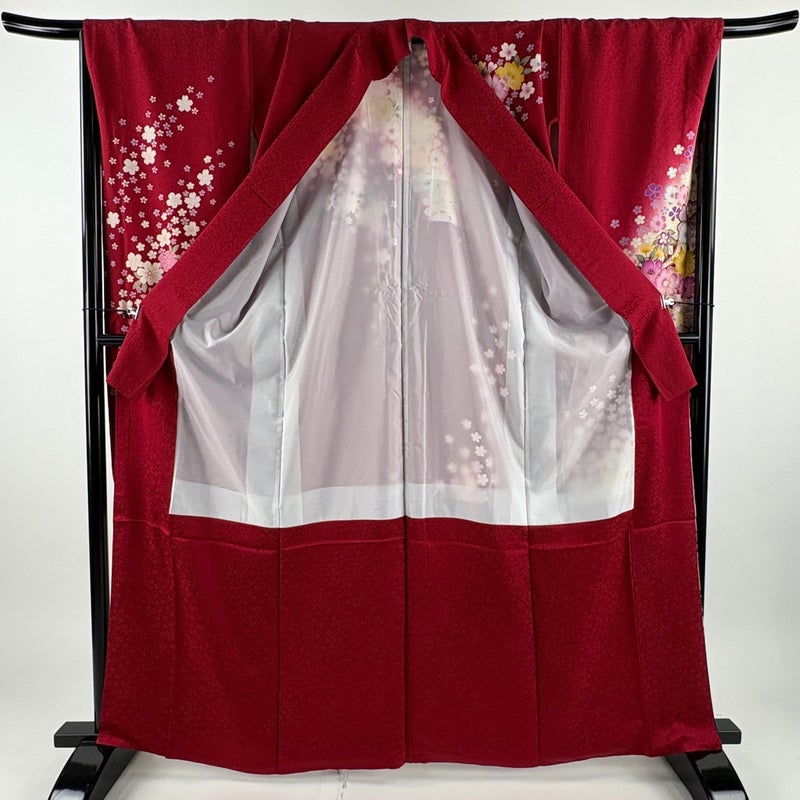 【振袖】 赤系 赤 名品 B 約160cm~約169cm 裄丈67cm-68cm (L)size 袖丈91cm以上 9990-29990 五万以下