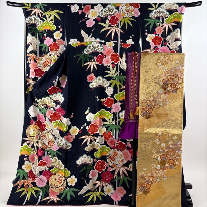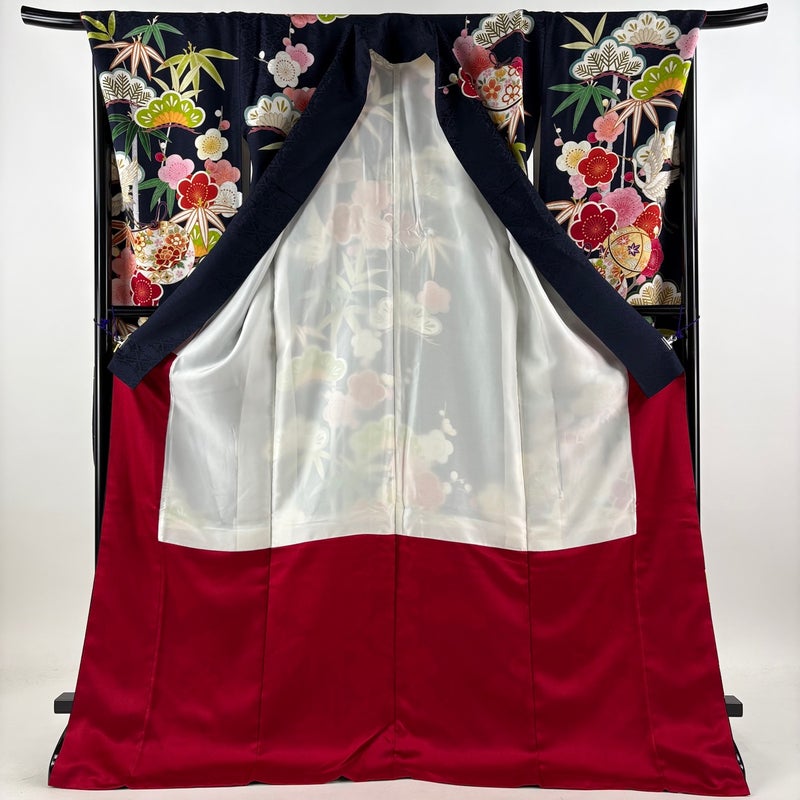 【振袖】 青系 濃紺 名品 A 約170cm~約179cm 裄丈69cm以上 (L)size 袖丈91cm以上 9990-29990 美品 五万以下