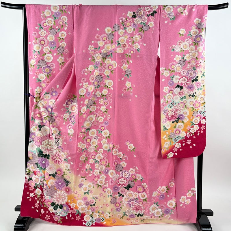 【振袖】 赤系 ピンク 名品 A 約160cm~約169cm 裄丈67cm-68cm (L)size 袖丈91cm以上 9990-29990 美品 五万以下