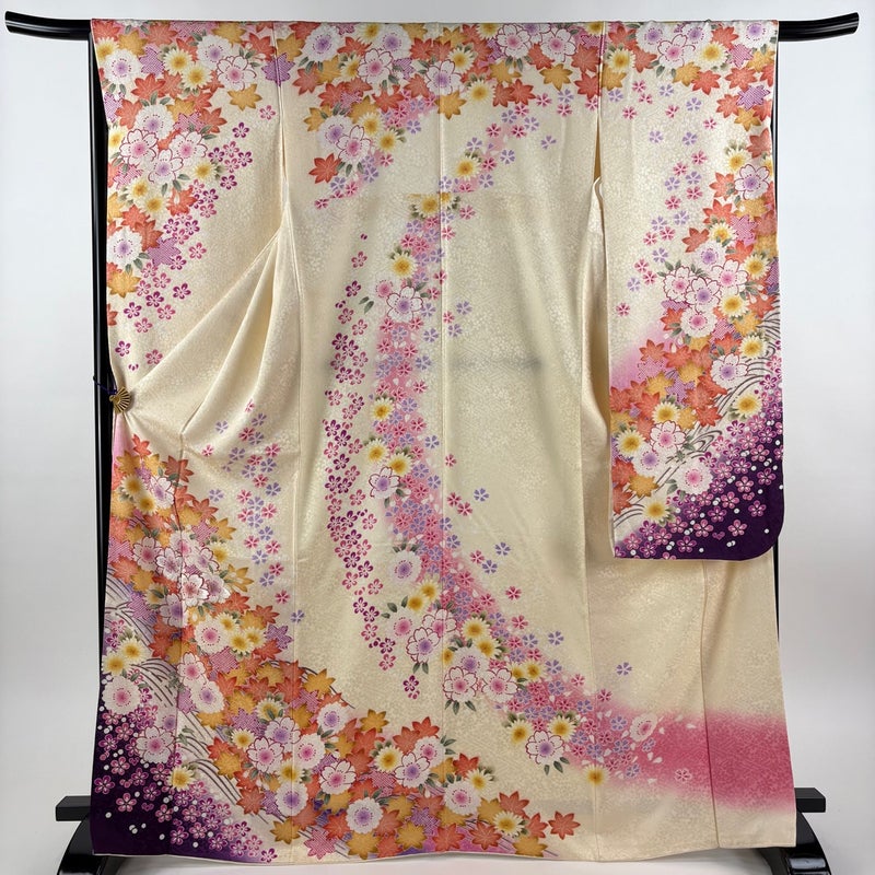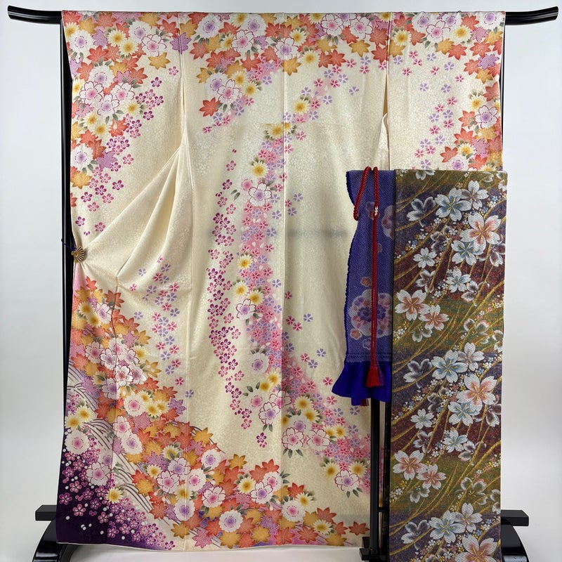 【振袖】 白系 クリーム 名品 A 約160cm~約169cm 裄丈66cm (M)size 袖丈91cm以上 9990-29990 美品 五万以下