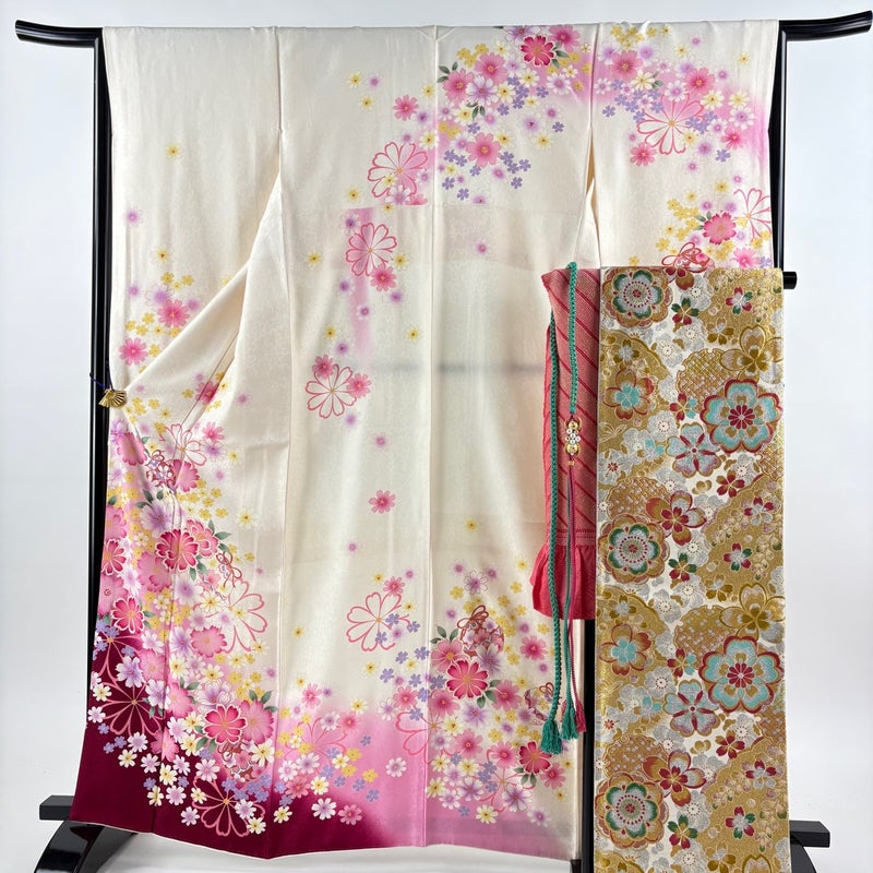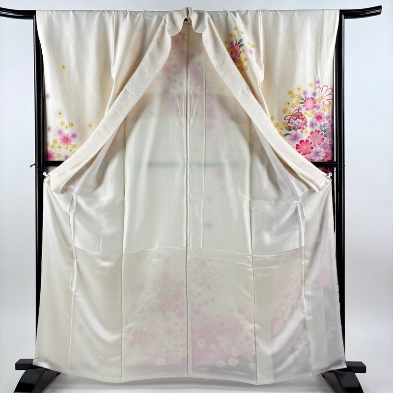【振袖】 白系 クリーム 名品 A 約160cm~約169cm 裄丈66cm (M)size 袖丈91cm以上 9990-29990 美品 五万以下
