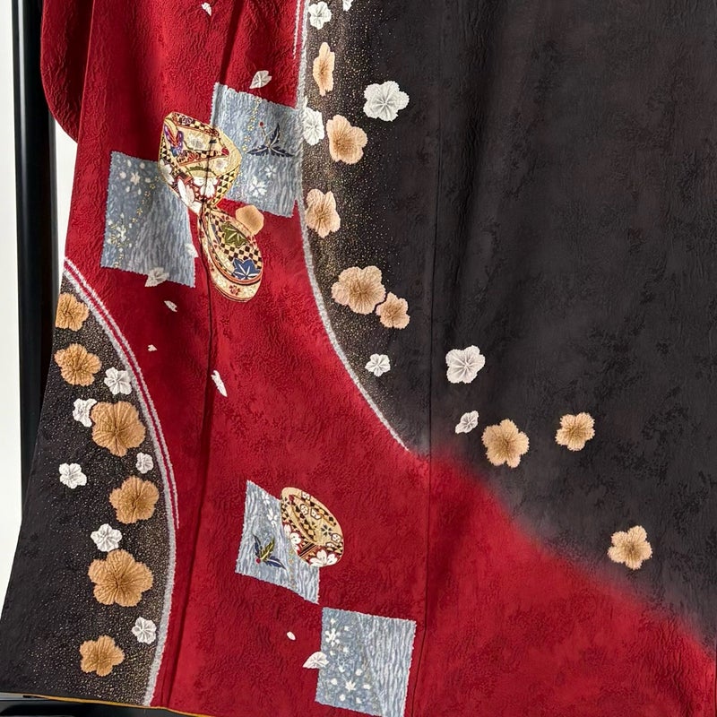 【振袖】 赤系 赤 秀品 B 約150cm~約159cm 裄丈67cm-68cm (L)size 袖丈91cm以上 7990-9980 二万以下