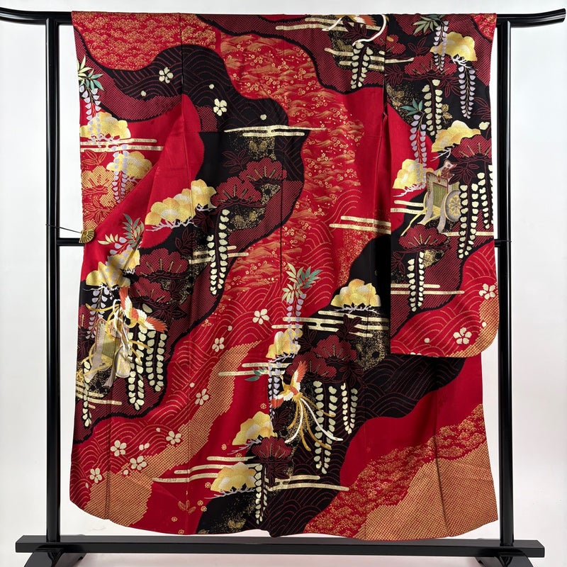 【振袖】 赤系 赤 秀品 B 約150cm~約159cm 裄丈62cm以下 (S)size 袖丈91cm以上 7990-9980 二万以下