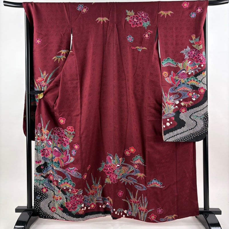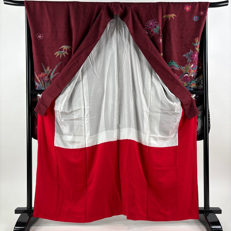 【振袖】 赤系 小豆色 秀品 B 約160cm~約169cm 裄丈67cm-68cm (L)size 袖丈91cm以上 7990-9980 二万以下